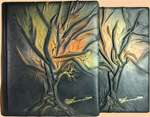 обложка для книг с изображением лебедей и инициалов владельца (рельеф, бинты)